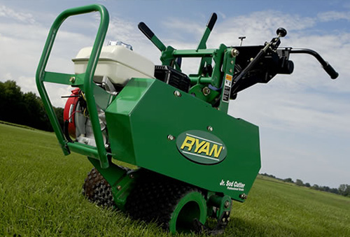 | | Perfect Ryan Jr Sod Cutter the improved Jr Sod Cutter sports a host of new features, including reduced hand/arm vibration, cut by remarkable 75 percent for more comfortable operation. A new pneumatic rear castor wheel with lockout allows curved landscape cutting with unmatched precision. A true workhorse, the Jr. Sod Cutter pack the speed, convenience and reliability you've come to expect from Ryan. |